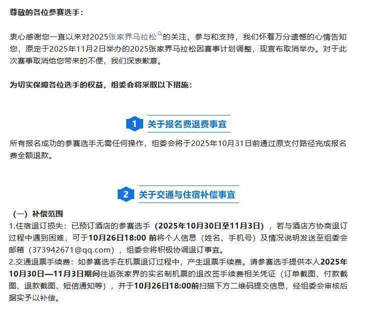 10月15日炒股配资平台股票配资门户,张家界马拉松组委会发布公告,原定于2025年11月2日举办的2025张家界马拉松因赛事计划调整,现正式宣布取消举办。